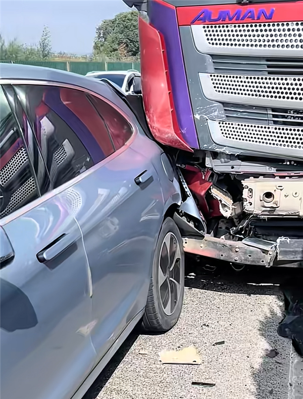 问界M5被32吨大货欧交易所官网车追尾并冲撞前车:车门正常开 5人都安全