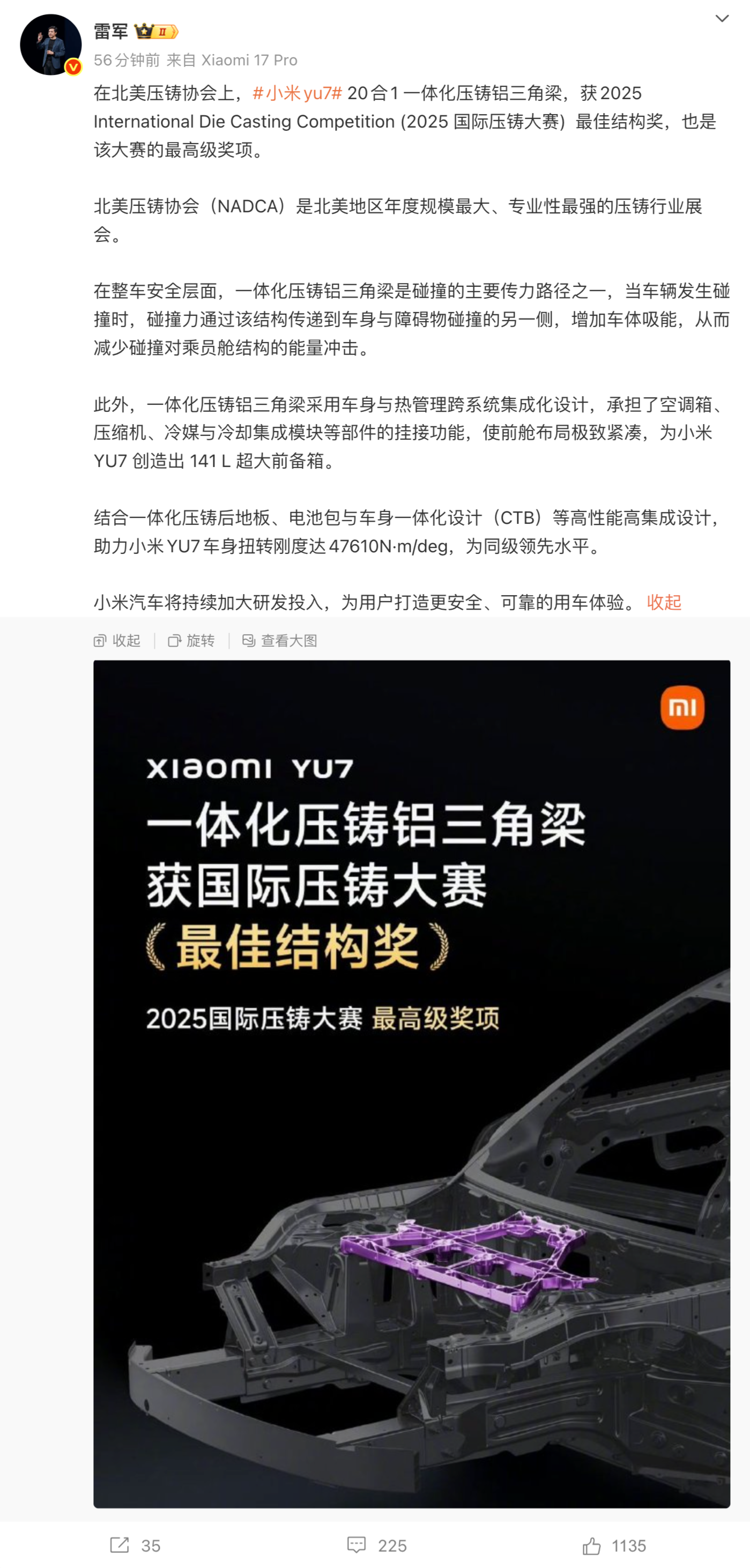 - 雷军:小米SU7 Ultra与YU7车载ETC免费激活,已付费用户补偿500积分