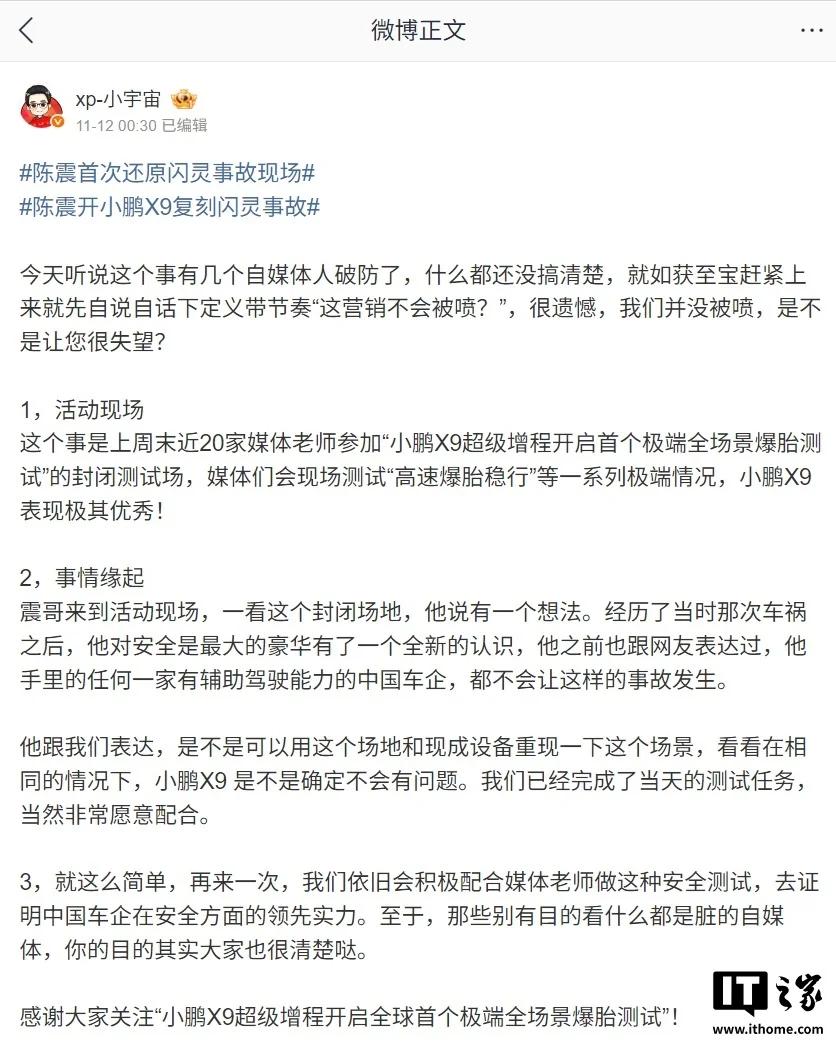 小鹏汽车员工 @xp-小宇宙 11 月 12 日凌晨发文回应称: